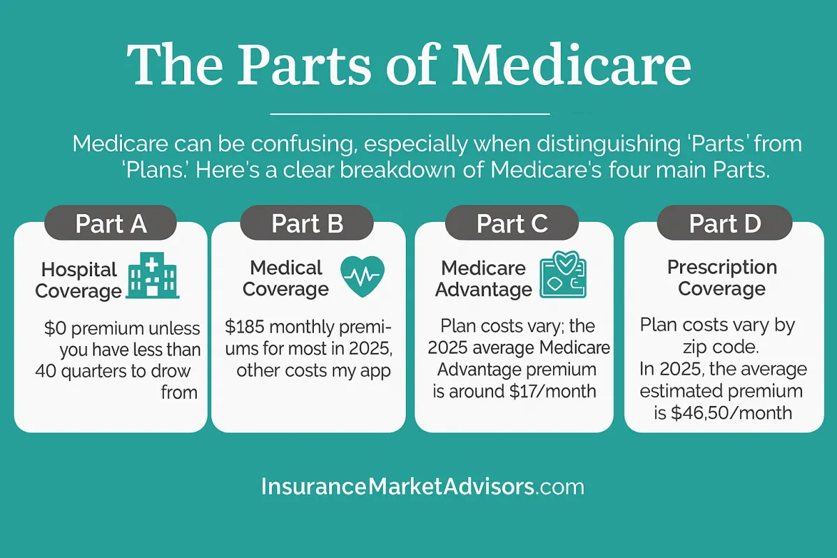 • Part A (Hospital Insurance) – Inpatient care, skilled nursing facilities, hospice, and some home health care.